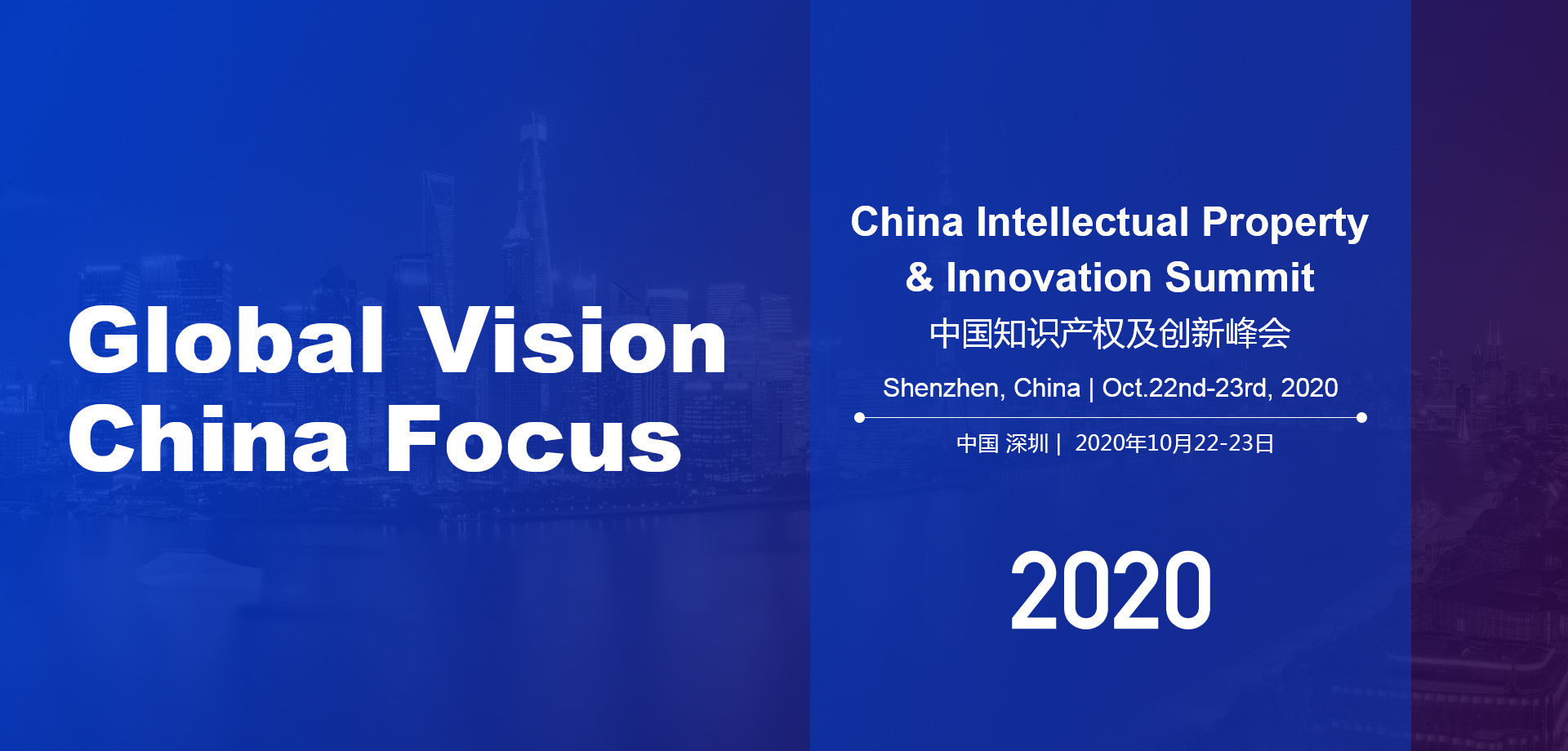 中国国家主席习近平在2019年多次着重强调了中国将致力打造尊重知识产权的营商环境,全面改善知识产权保护法律体系,依法严厉打击侵犯知识产权行为。值此背景下,2020年第九届及第十届“中国知识产权及创新峰会”(China Intellectual Property & Innovation Summit)将分别于2020年10月15-16日在上海;以及2020年10月22-23日于深圳举行!